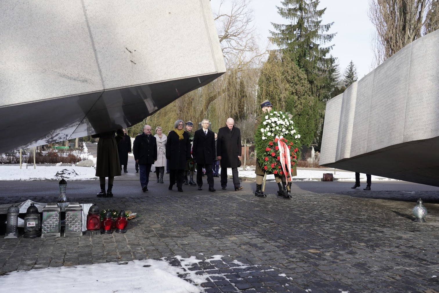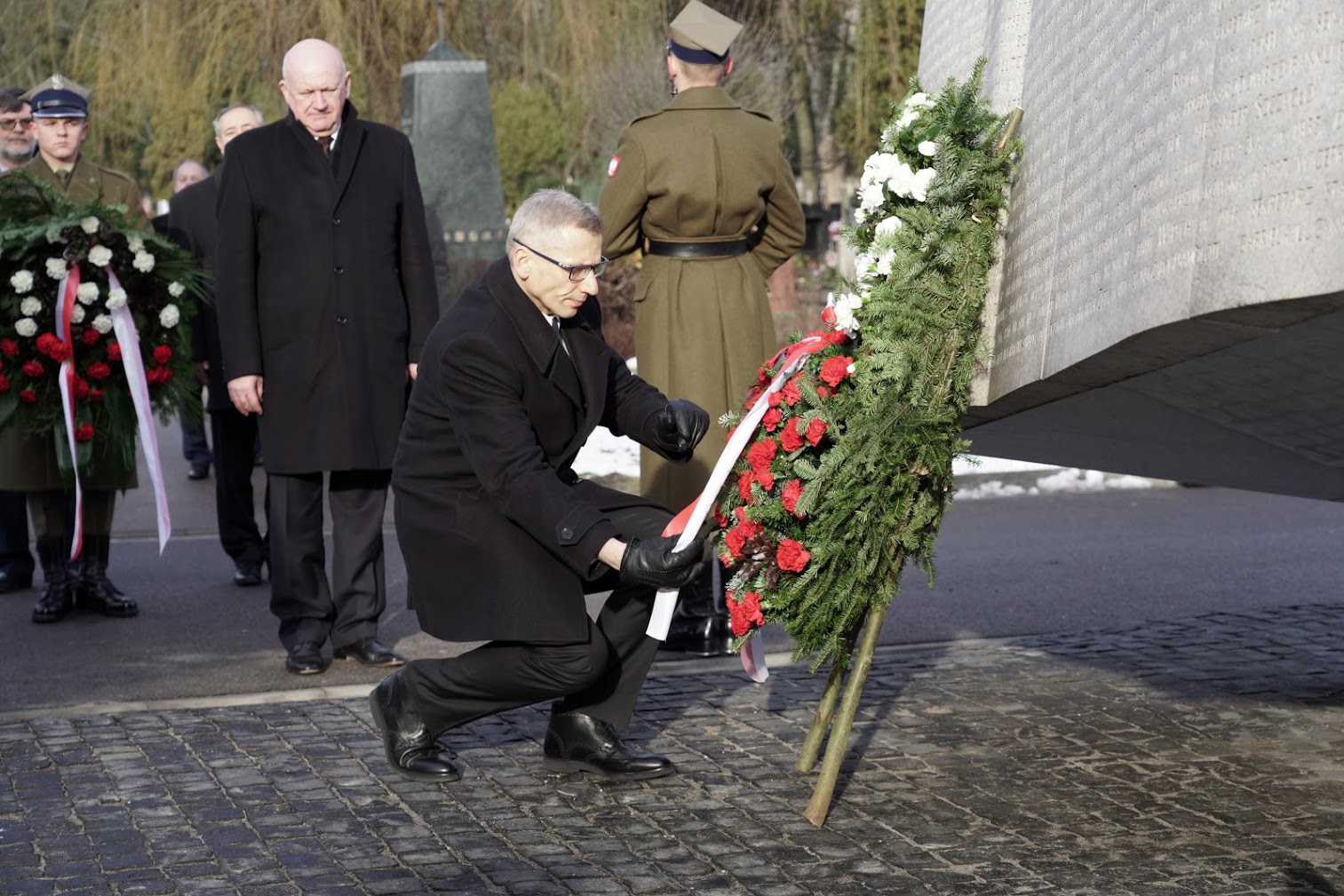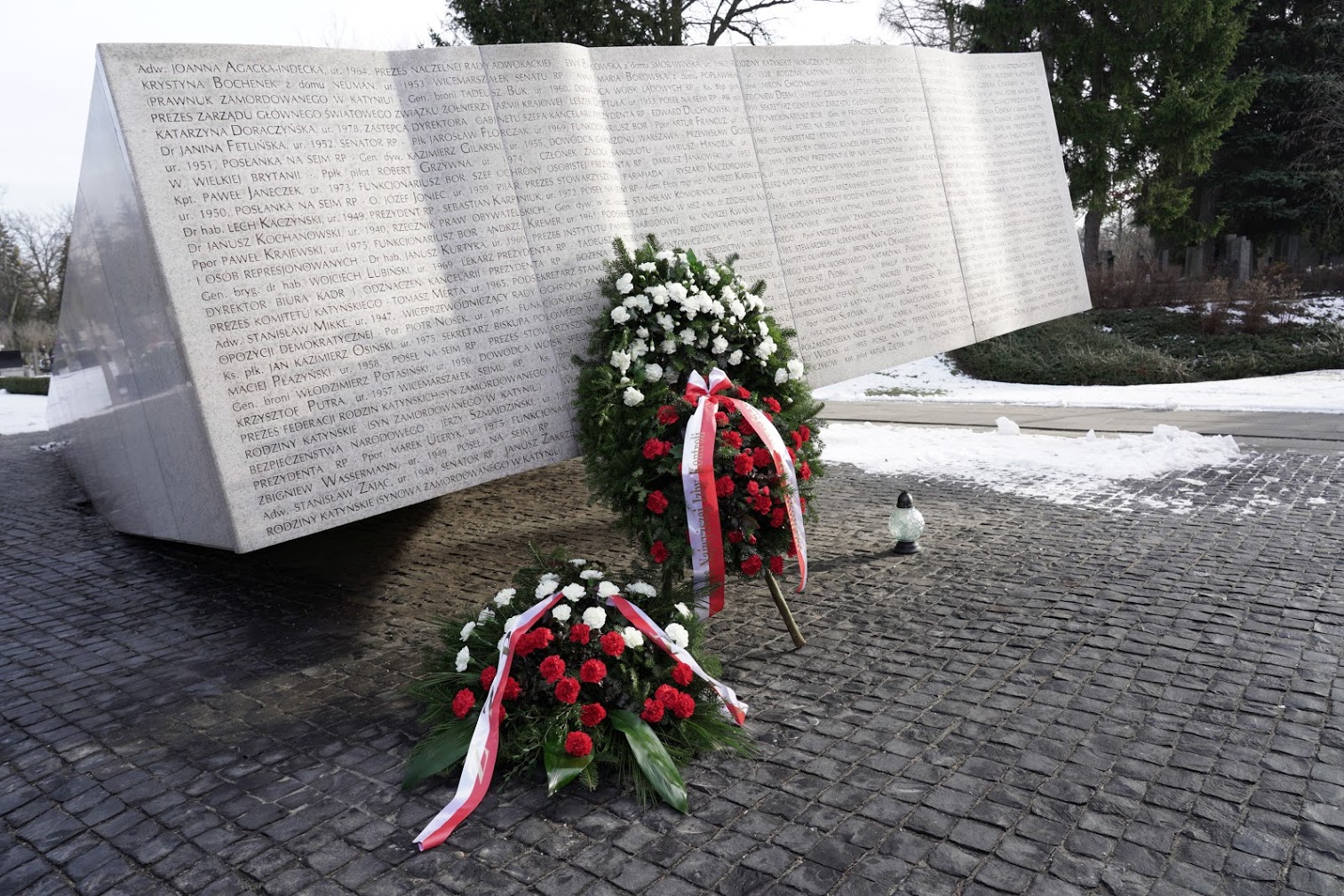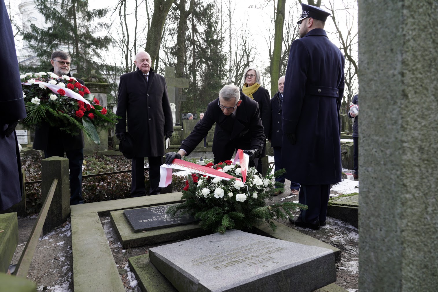 Następnie delegacja NIK uczciła pamięć byłych pracowników Izby na Starych Powązkach. Wiązanki złożono na mogile naszego pierwszego prezesa Józefa Higersbergera, a także przed Pomnikiem Ofiar Katastrofy Smoleńskiej. Na grobach ofiar katastrofy, byłych pracowników NIK - Władysława Stasiaka, Aleksandra Szczygły i Sławomira Skrzypka - zapalono znicze.