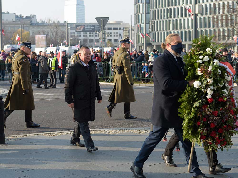 W południe 11 listopada główne obchody Dnia Niepodległości odbyły się na Placu Marszałka Józefa Piłsudskiego. Uczestniczyli w niej przedstawiciele najwyższych władz państwowych z Prezydentem RP Andrzejem Dudą, przedstawiciele władz samorządowych i wszystkich służb mundurowych. Wśród zaproszonych był Prezes NIK Marian Banaś. Po uroczystej odprawie wart, która stanowi najbardziej podniosły moment Narodowego Święta Niepodległości, Prezes NIK złożył wieniec w hołdzie tym, którzy oddali życie za Niepodległą. Rano w Świątyni Opatrzności Bożej Marian Banaś razem z przedstawicielami najwyższych władz modlił się podczas uroczystej mszy świętej odprawionej w intencji ojczyzny.