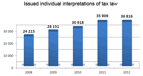 growing demand for tax law interpretations which confirms ambiguity and complexity of law. The diagram below presents an increase in tax law interpretations in the period 2008-2012;
